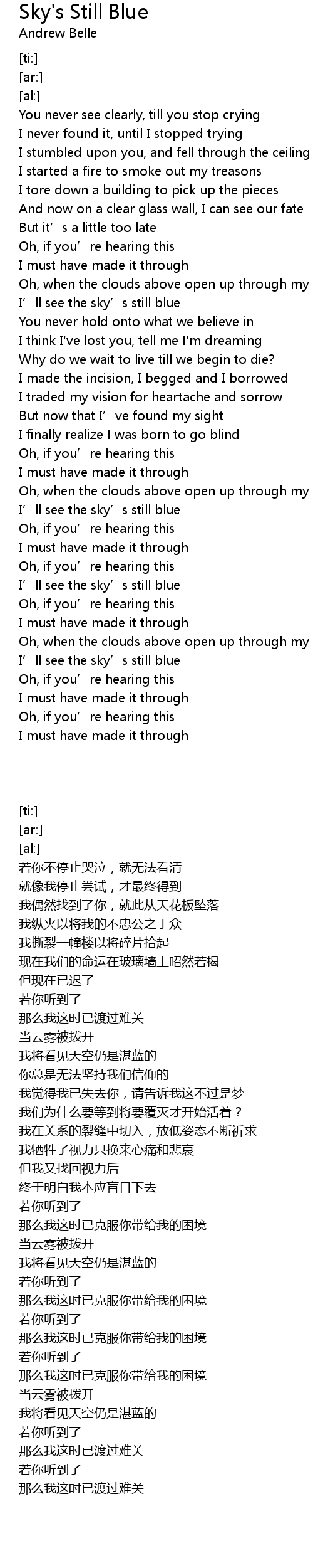| [03:30.69] | Oh, when the clouds above open up through my window |