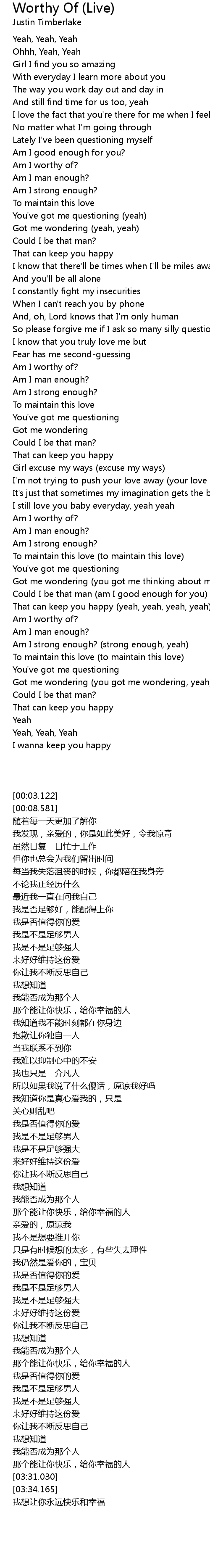 Am I worthy of? |