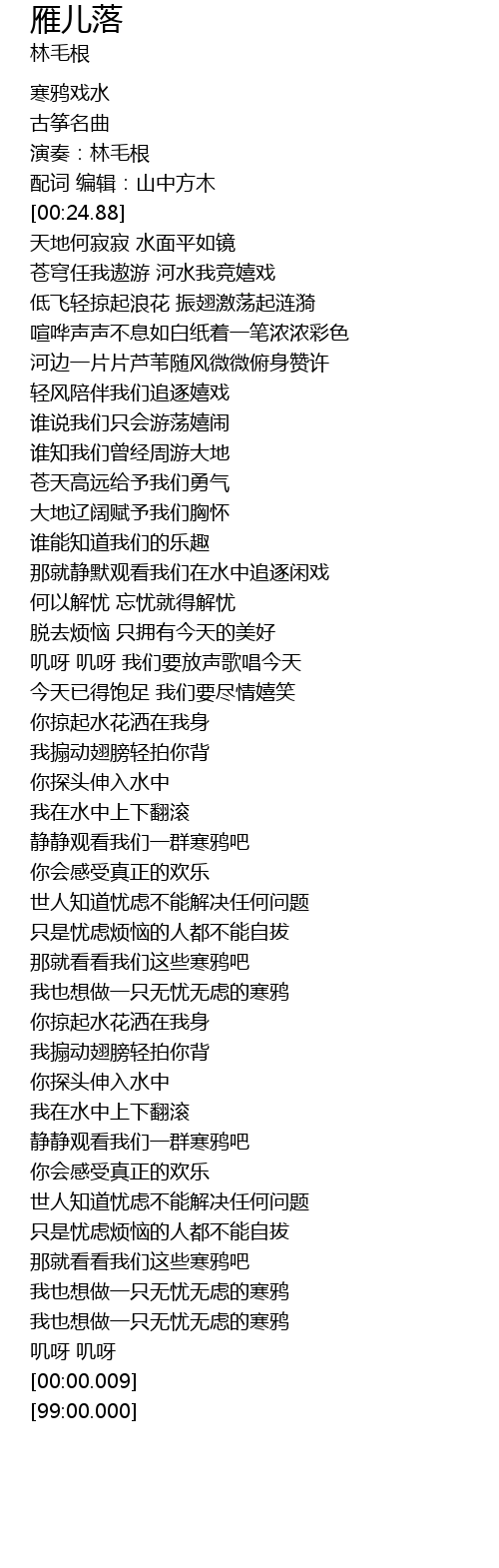 [00:14.81] 演奏:林毛根