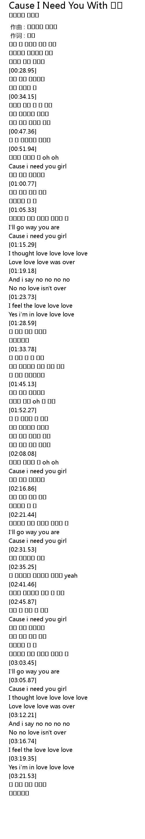 | [02:29.50] | Cause i need you girl |