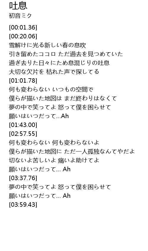 | [00:41.62] | 過ぎ去りた日々にため息混じりの吐息 |