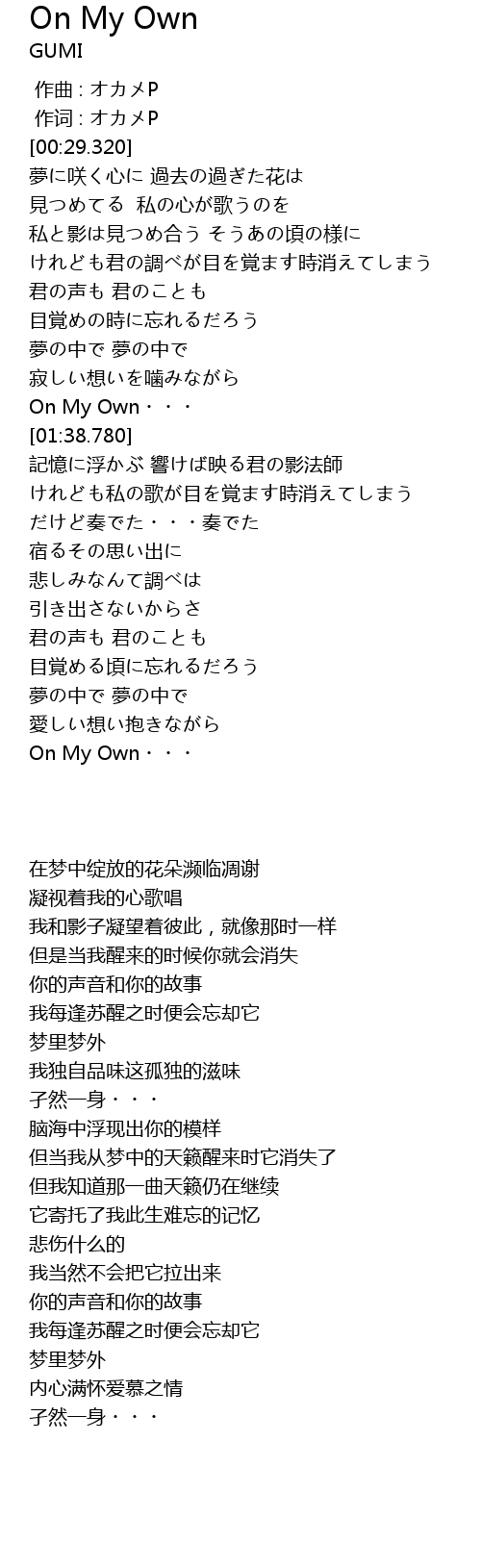| [01:32.040] | On My Own・・・ |
