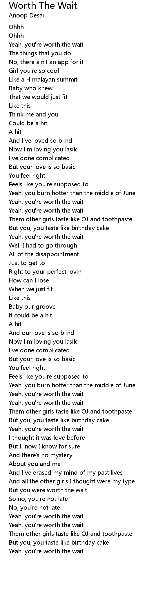 Yeah, you're worth the wait |