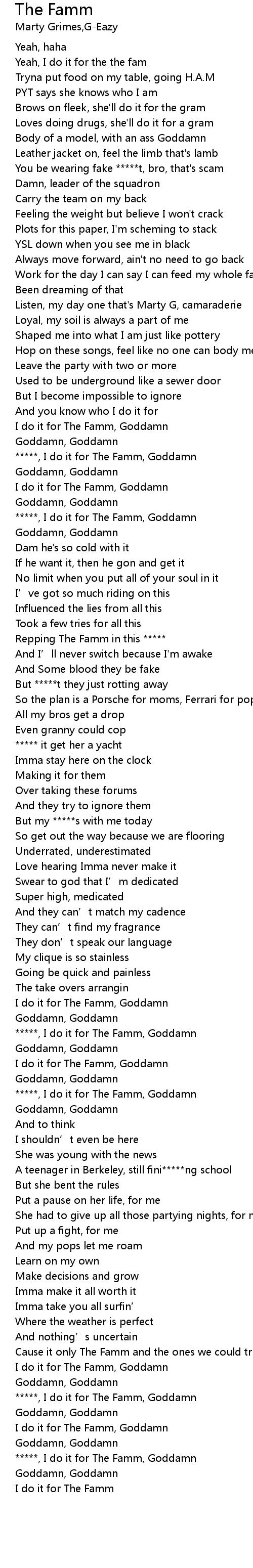 | [03:37.63] | *****, I do it for The Famm, Goddamn |