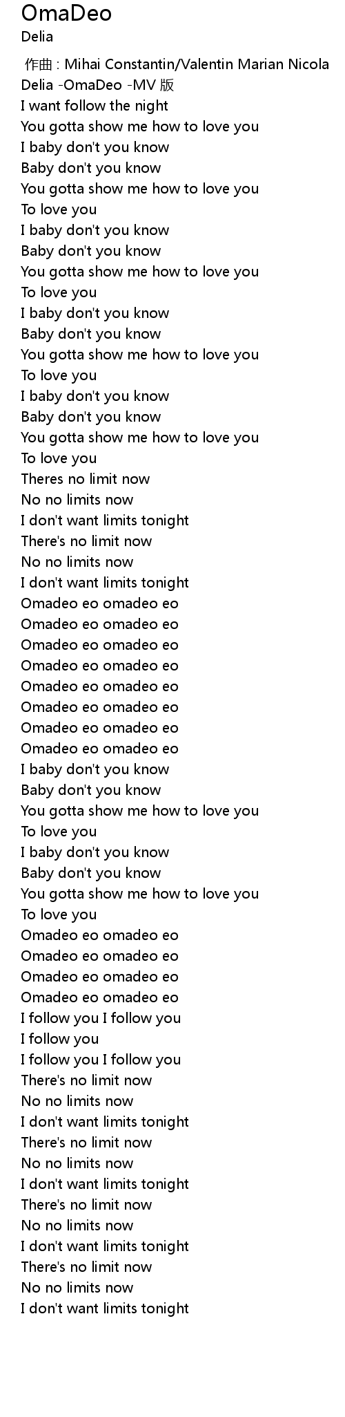 | [00:00.551] | Delia -OmaDeo -MV 版 |