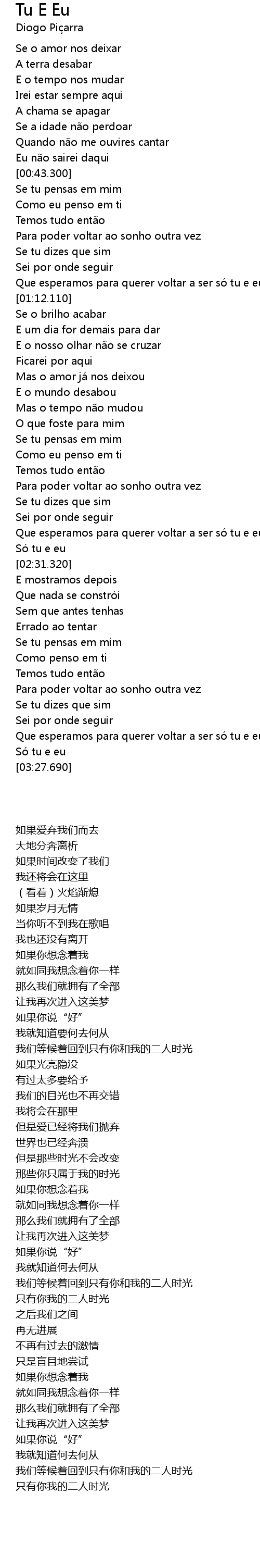 | [03:07.060] | Que esperamos para querer voltar a ser so tu e eu |