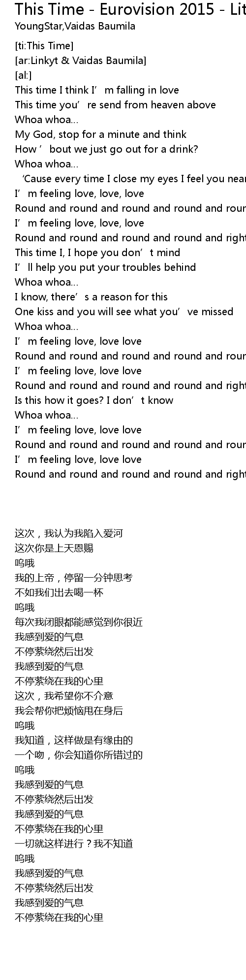 | Song | This Time - Eurovision 2015 - Lithuania |