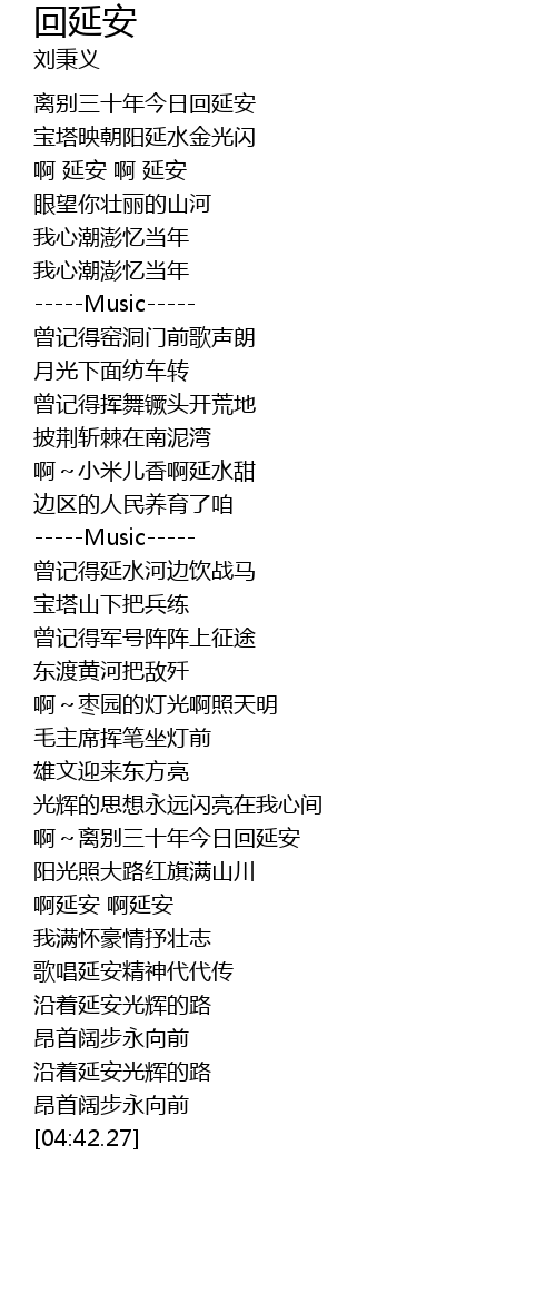 | [01:00.37] | 啊 延安 啊 延安 |