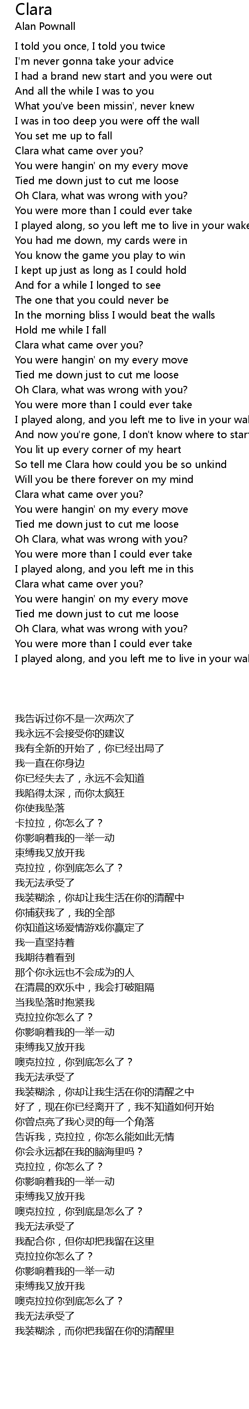 So tell me Clara how could you be so unkind |