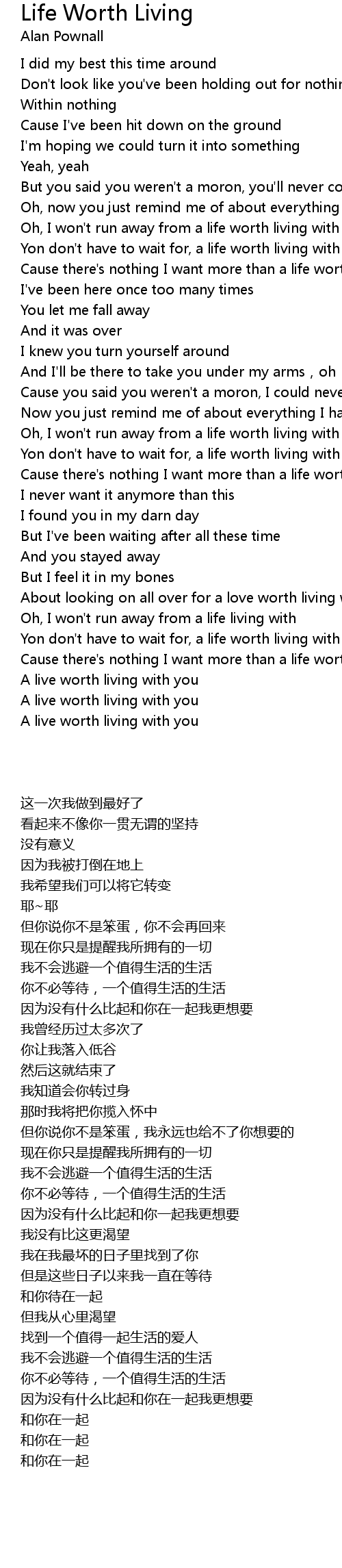 | [02:37] | Cause there' s nothing I want more than a life worth living with you |