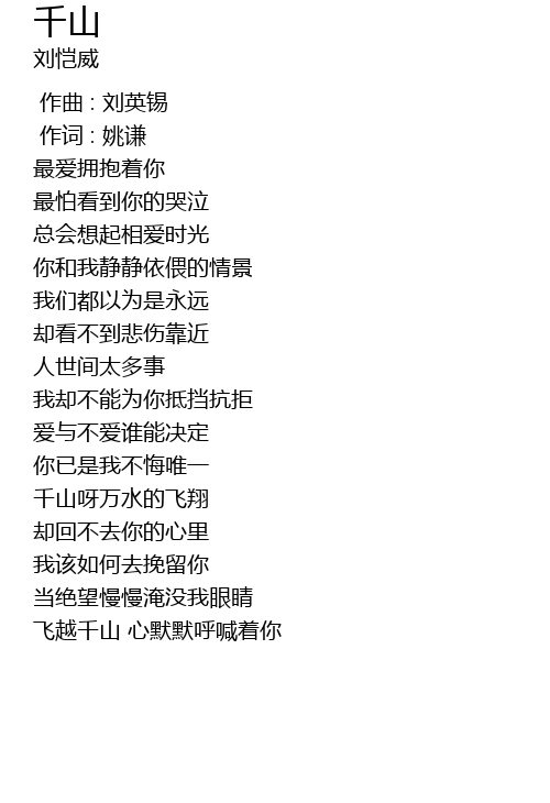 | [01:15.780] | qian shan ya wan shui de fei xiang |