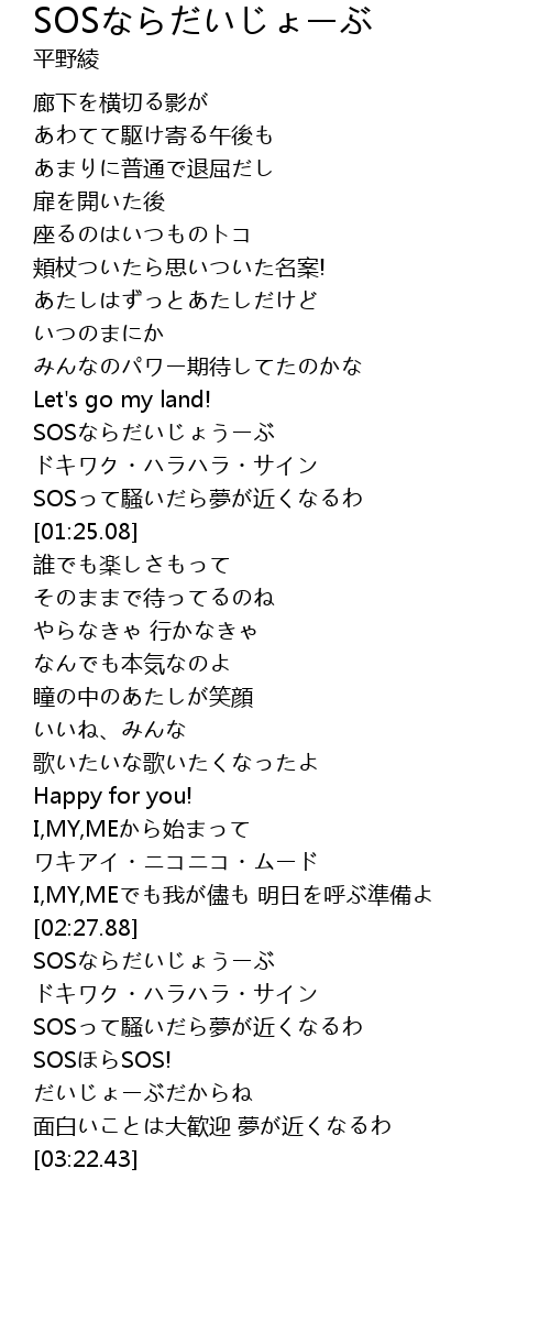 | [01:15.62] | SOSって騒いだら夢が近くなるわ |