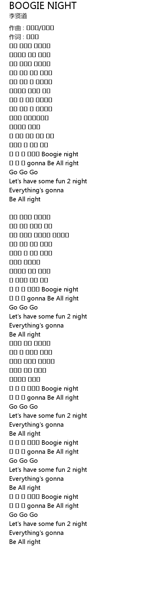 | 예 예 예 다함께 Boogie night | |