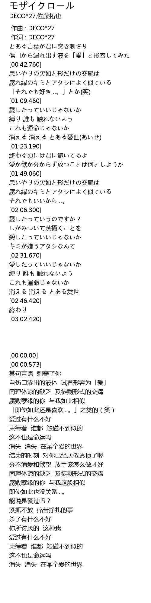 | [00:00.00] | zuò qǔ : DECO 27 |