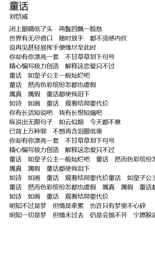 | 童话 然而色彩缤纷怎都也虚假 属真 属假 童话都使我泪下 | |