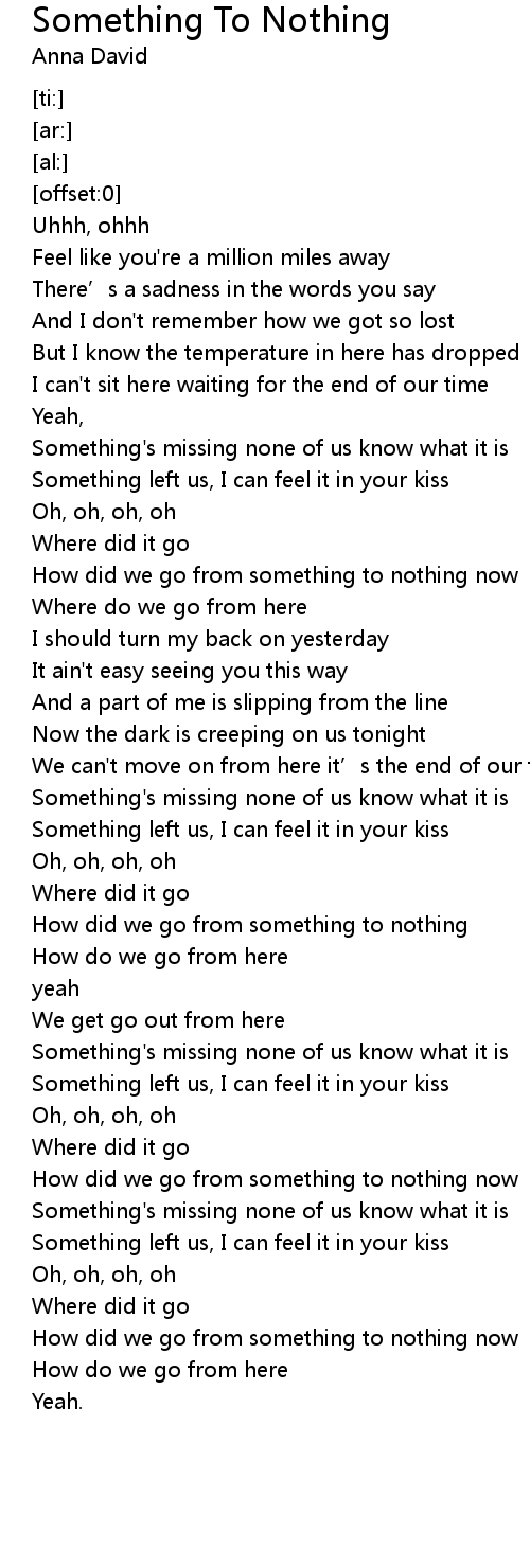 | [03:10.97] | How did we go from something to nothing now |