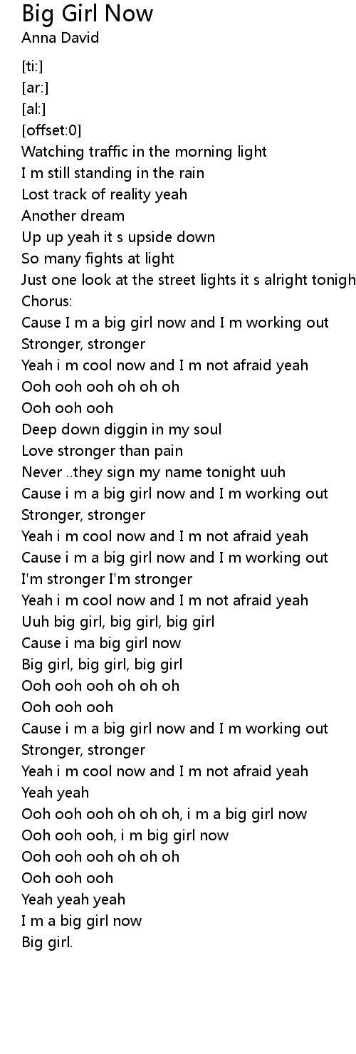 Ooh ooh ooh oh oh oh, i m a big girl now |