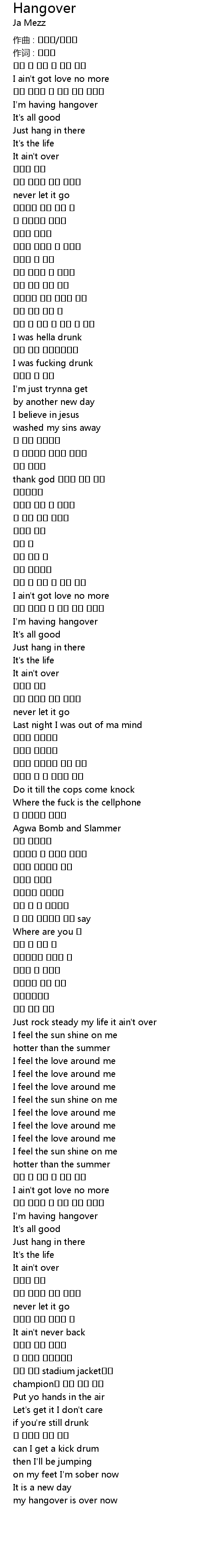 | Song | Hangover |