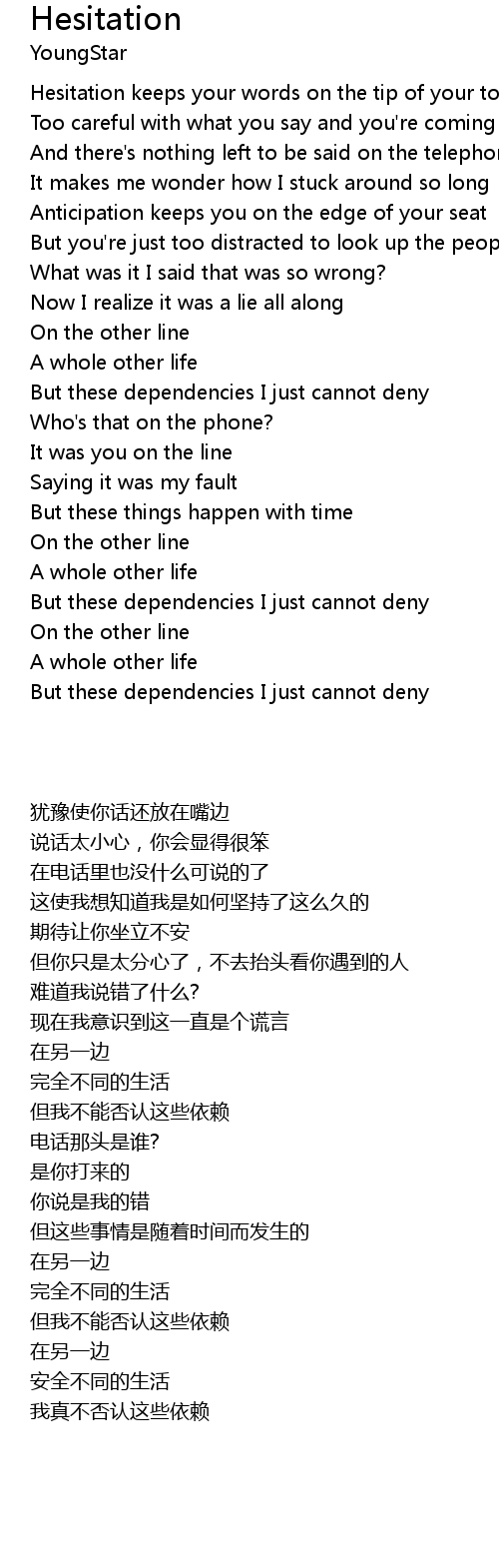 | [00:20.98] | Hesitation keeps your words on the tip of your tongue |