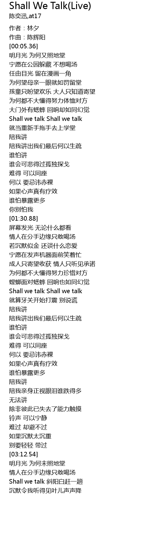 | [02:12.44] | Shall we talk Shall we talk |
