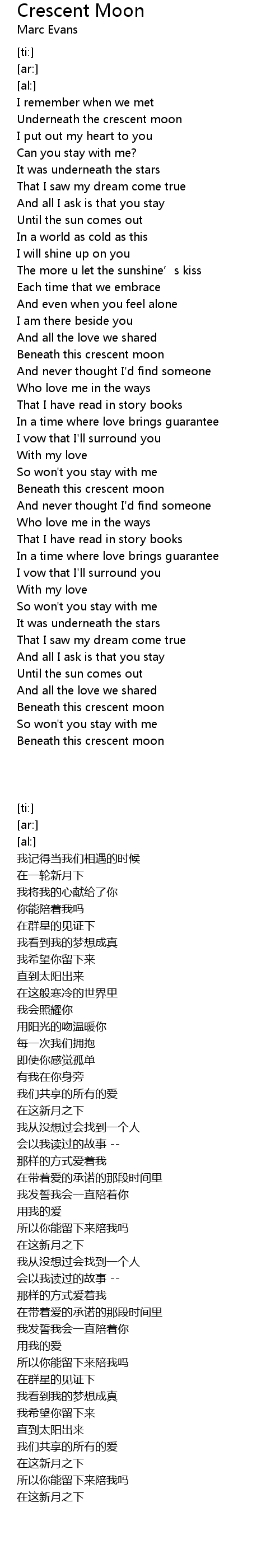 | [00:25.34] | Underneath the crescent moon |