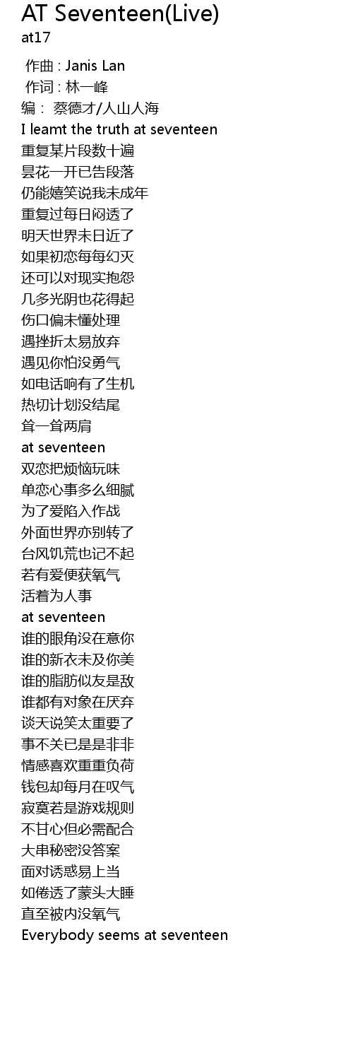 | [00:00.00] | zuò qǔ : Janis Lan |