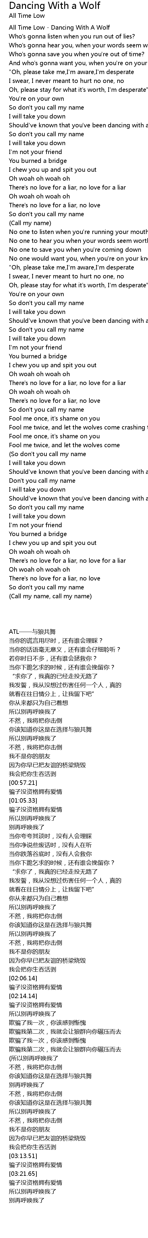 | All Time Low Dancing With A Wolf | |
