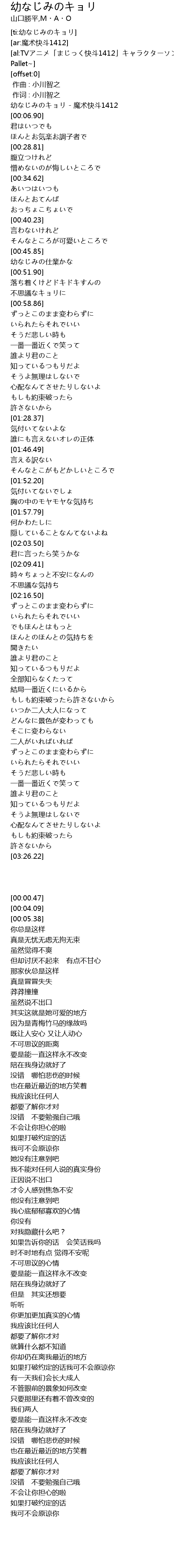 | [00:00.47] | 幼なじみのキョリ - 魔术快斗1412 |