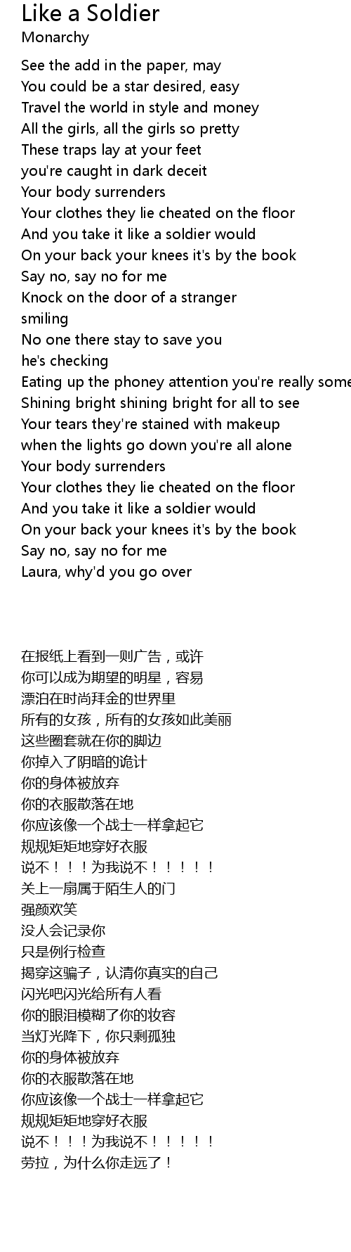 | [01:21.00] | And you take it like a soldier would |