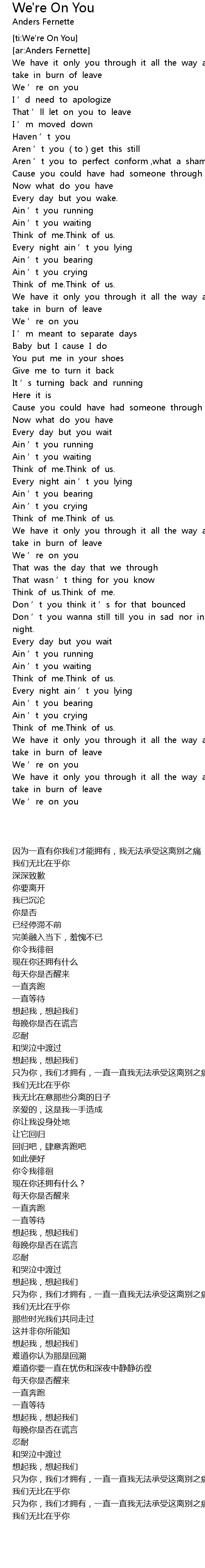 | [ti:We're On You] | |