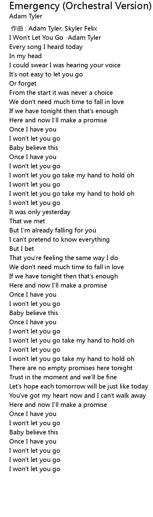 | [00:00.920] | I Won' t Let You Go Adam Tyler |