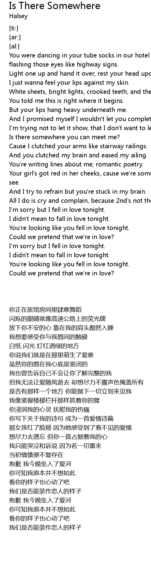 | [02:50.93] | Could we pretend that we're in love? |