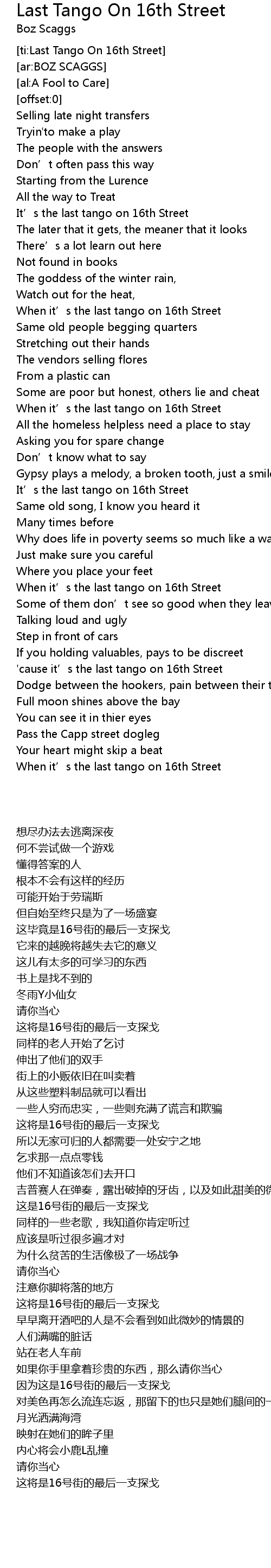 | [04:41.50] | 'cause it’s the last tango on 16th Street |