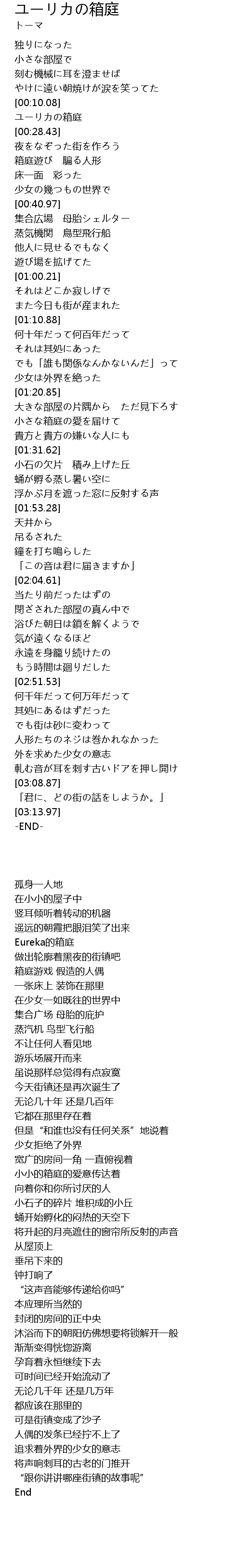 | [00:15.81] | ユーリカの箱庭 |