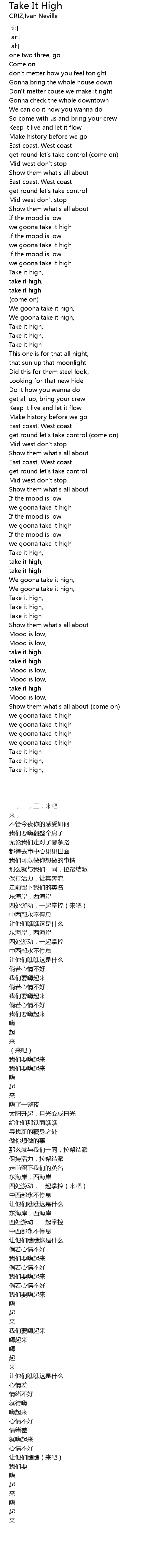 | Song | Take It High |