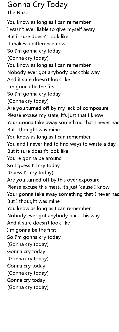 | So I'm gonna cry today | |
