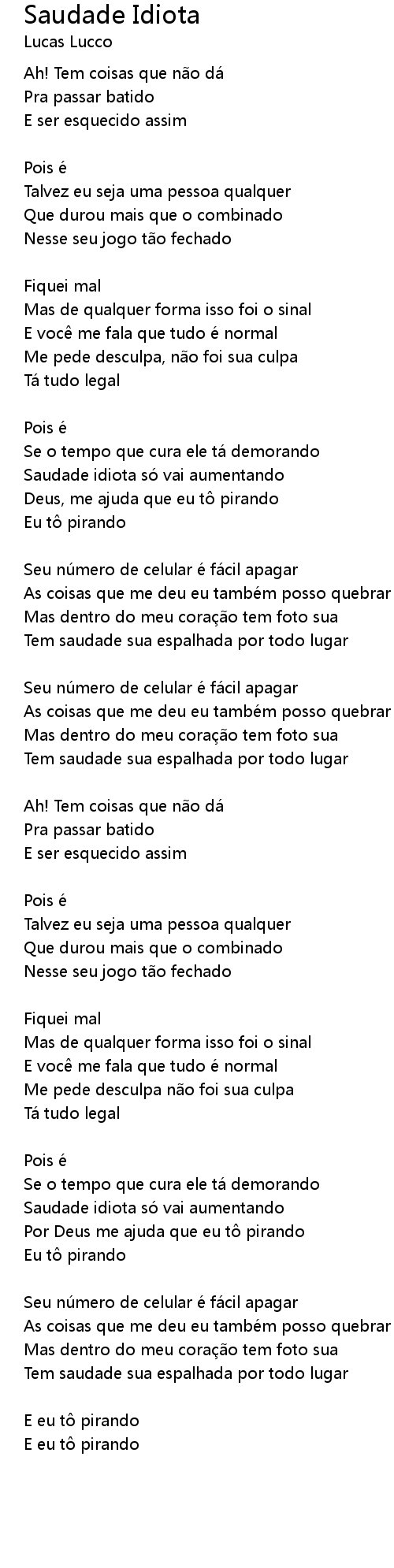 | Saudade idiota so vai aumentando | |