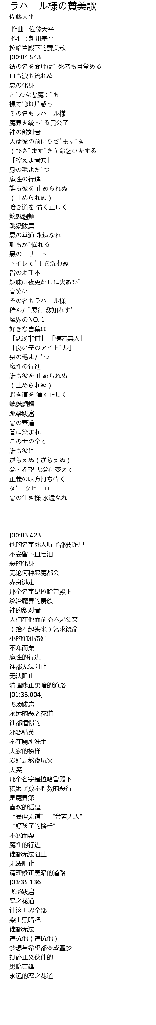 | [00:03.423] | 拉哈鲁殿下的赞美歌 |