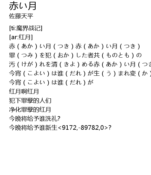 | [00:00.731] | 赤(あか)い月(つき)赤(あか)い月(つき) |