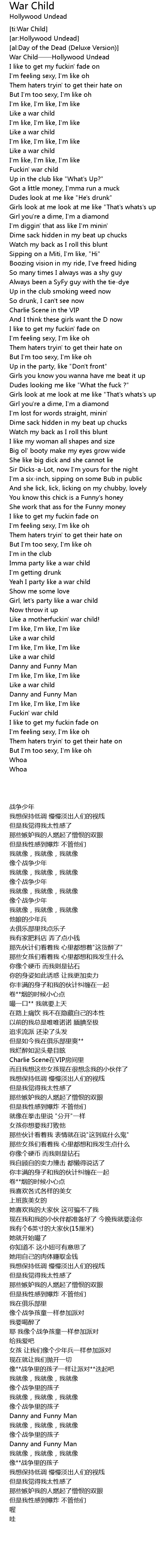 | [00:04.04] | War Child——Hollywood Undead |