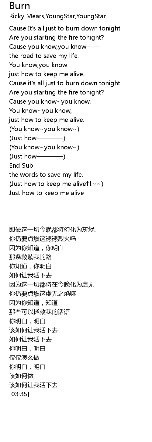| [01:41] | Cause it' s all just to burn down tonight. |