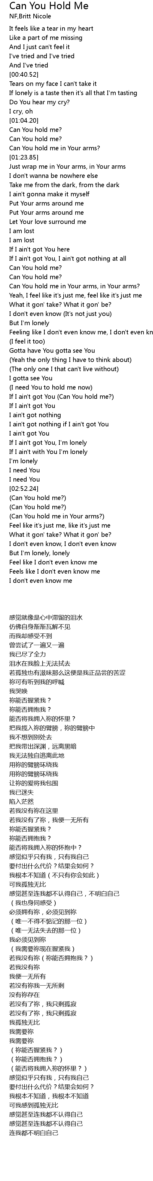 | [01:54.40] | Can You hold me? |