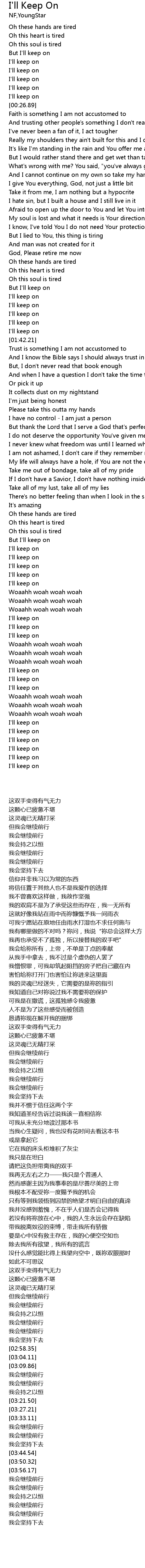 | [00:22.22] | I'll keep on |