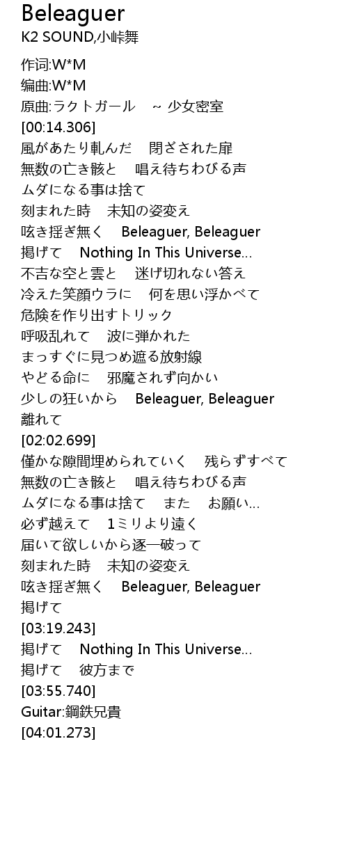 | [01:51.882] | 少しの狂いから Beleaguer, Beleaguer |