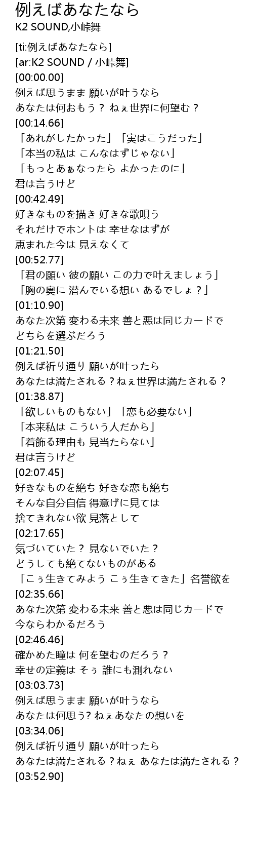 | [00:00.57] | 例えば思うまま 願いが叶うなら |