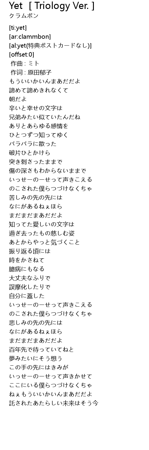 Yet Triology Ver. Lyrics
