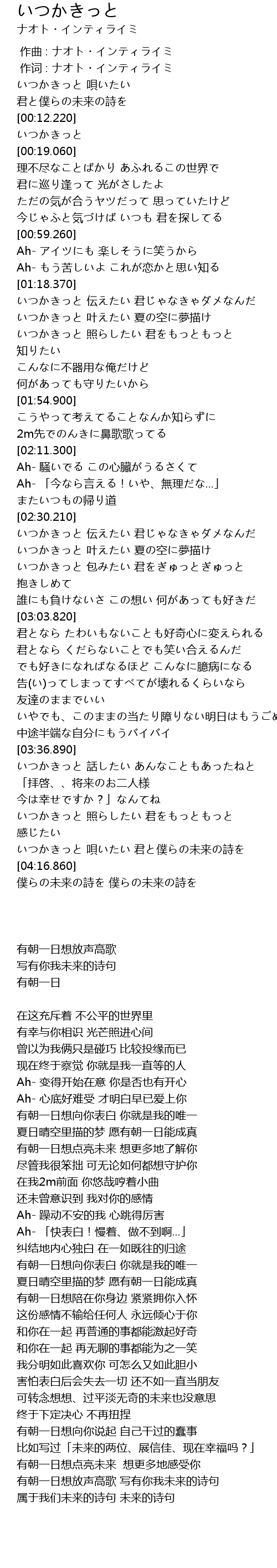 | [00:00.480] | 作词 : ナオト・インティライミ |
