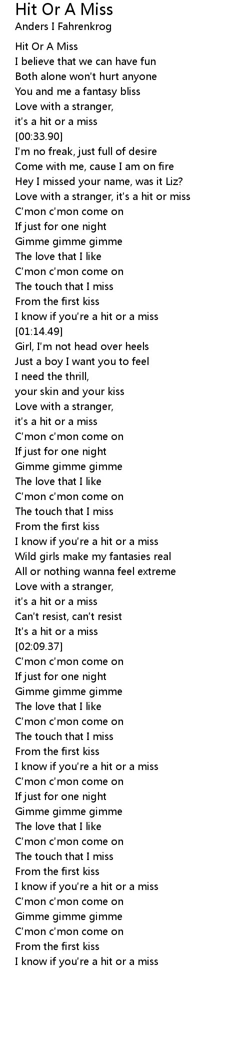 | [02:01.99] | it s a hit or a miss |