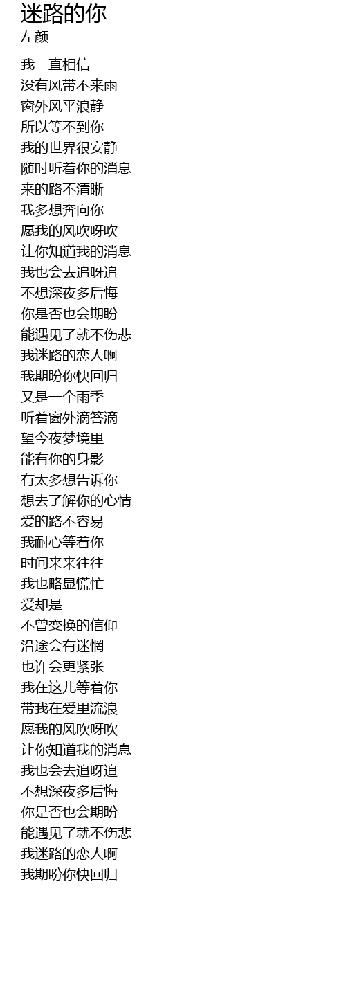 | [04:21.910] | wǒ mí lù de liàn rén a |