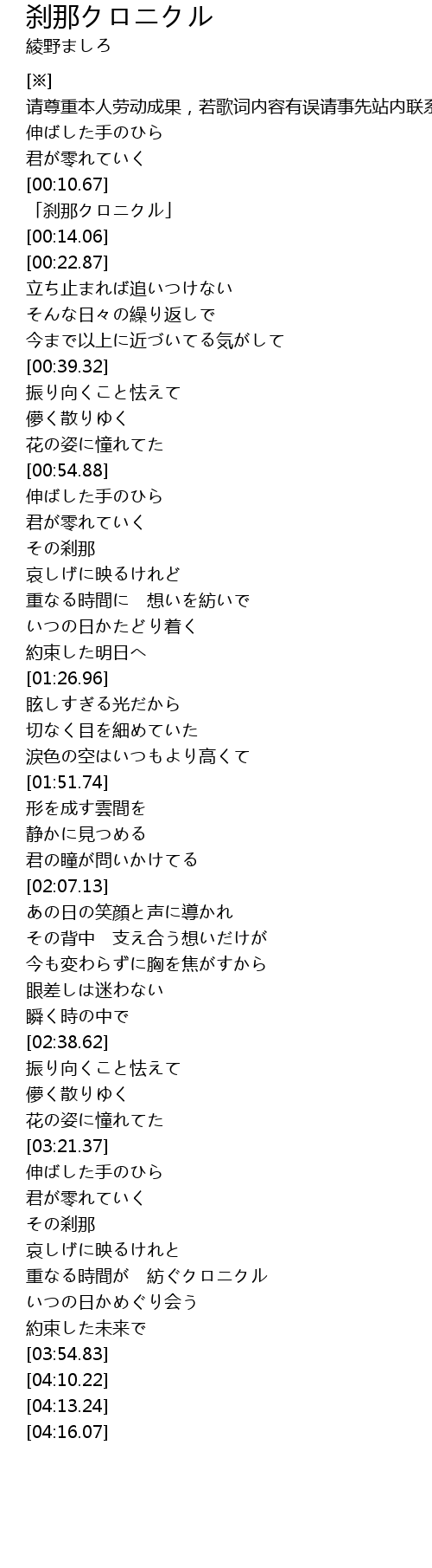 | [03:37.88] | 重なる時間が 紡ぐクロニクル |
